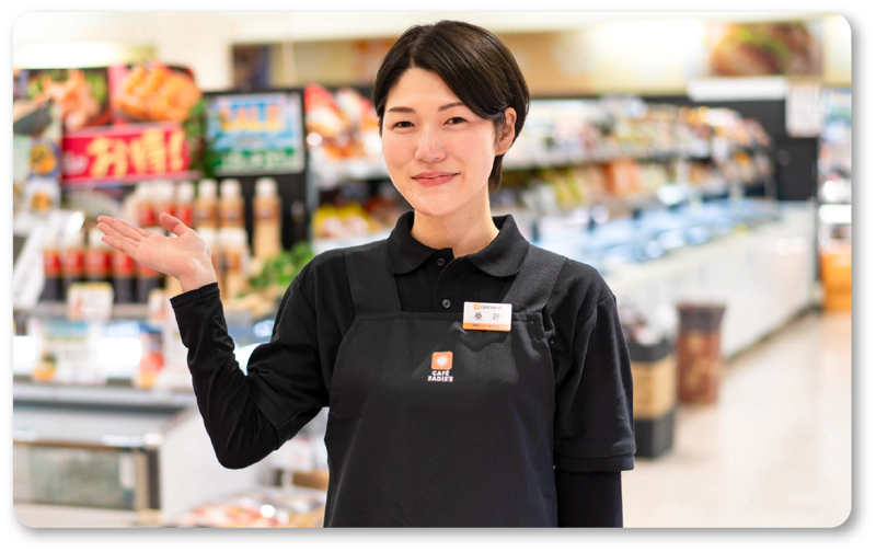 現在は常温商品とチルド商品(冷蔵商品)を担当していて、在庫管理や売り場構成のほか、店長のサポートとして